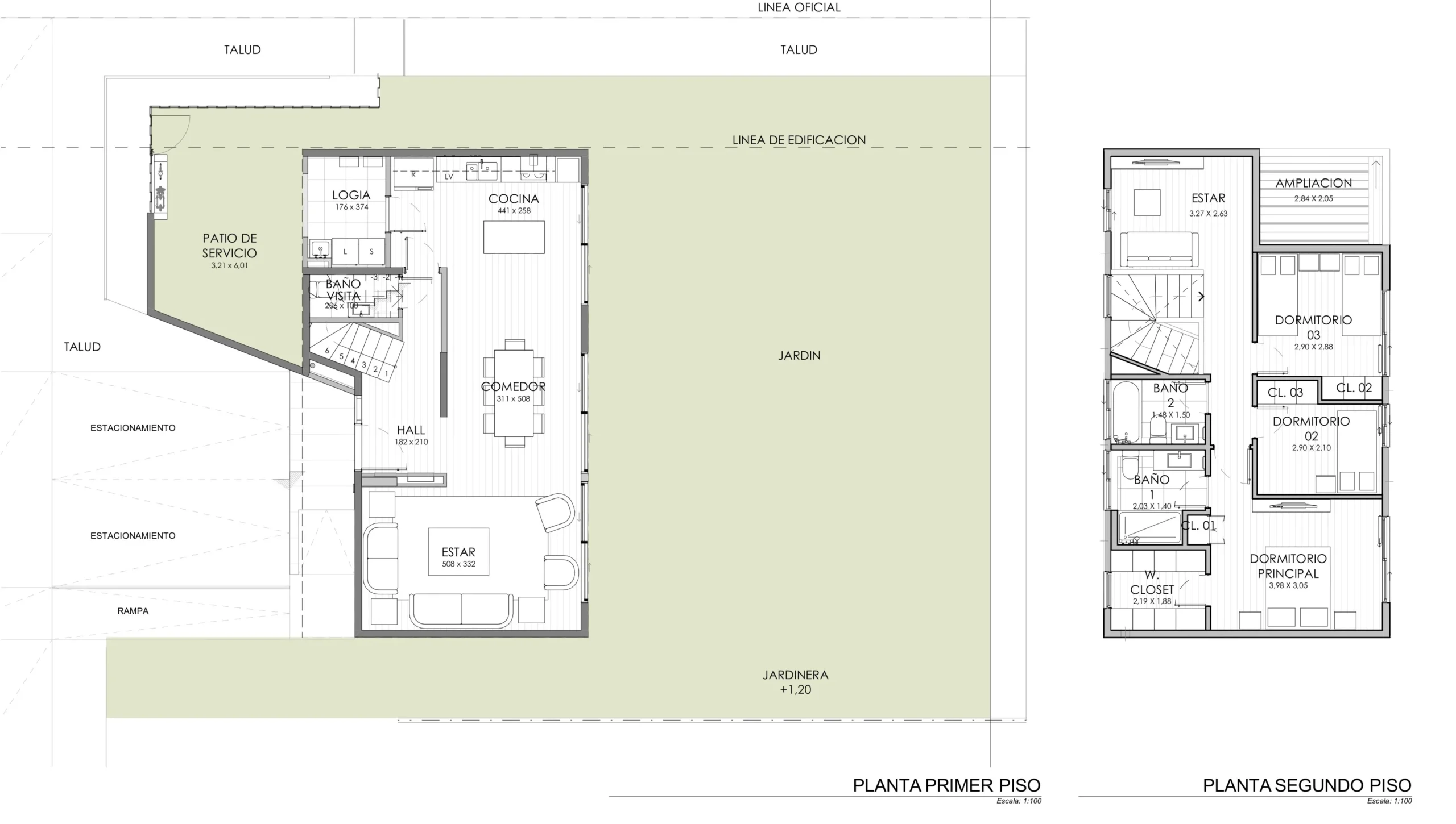 Cuentan con un amplio patio de servicio, con opción de ampliación a dormitorio y baño de servicio, ideal para familias que buscan flexibilidad. Además, existe la posibilidad de incorporar un cuarto dormitorio en el segundo piso.
